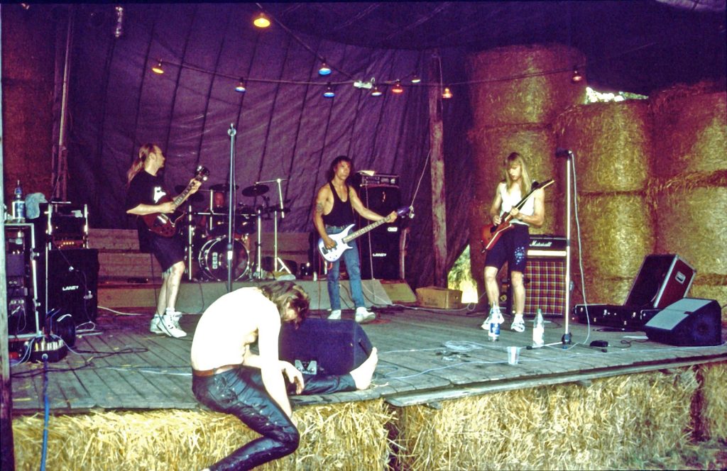 Wer ist damals eigentlich so aufgetreten? Ein paar Namen finden sich in den alten Aufzeichnungen. Es waren immer um die 12 Bands, jede hatte eine Stunde Spielzeit. Bei einer Anfangszeit von 12 Uhr ergab sich daraus, dass inklusive Umbauzeit die letzte Gruppe am frühen Sonntagmorgen um 3:30 Uhr anfing…ohne Anspruch auf korrekte Schreibweise (sorry dafür) waren das unter anderem „Doris Nova“, „Kilroy“, „The Sensi Smile“, „TLaloc“, „“Surfing Birds“, „My Friend Marvin“, „Buccaneers“, „Spirit Sprain“, „Beast of Burden“, „B18“, „Koreen“ ,… unvergessen an dieser Stelle – Stephan Bartels, der in einem alten Pferdeanhänger untergebracht war und die PA allein (!) abwickelte.